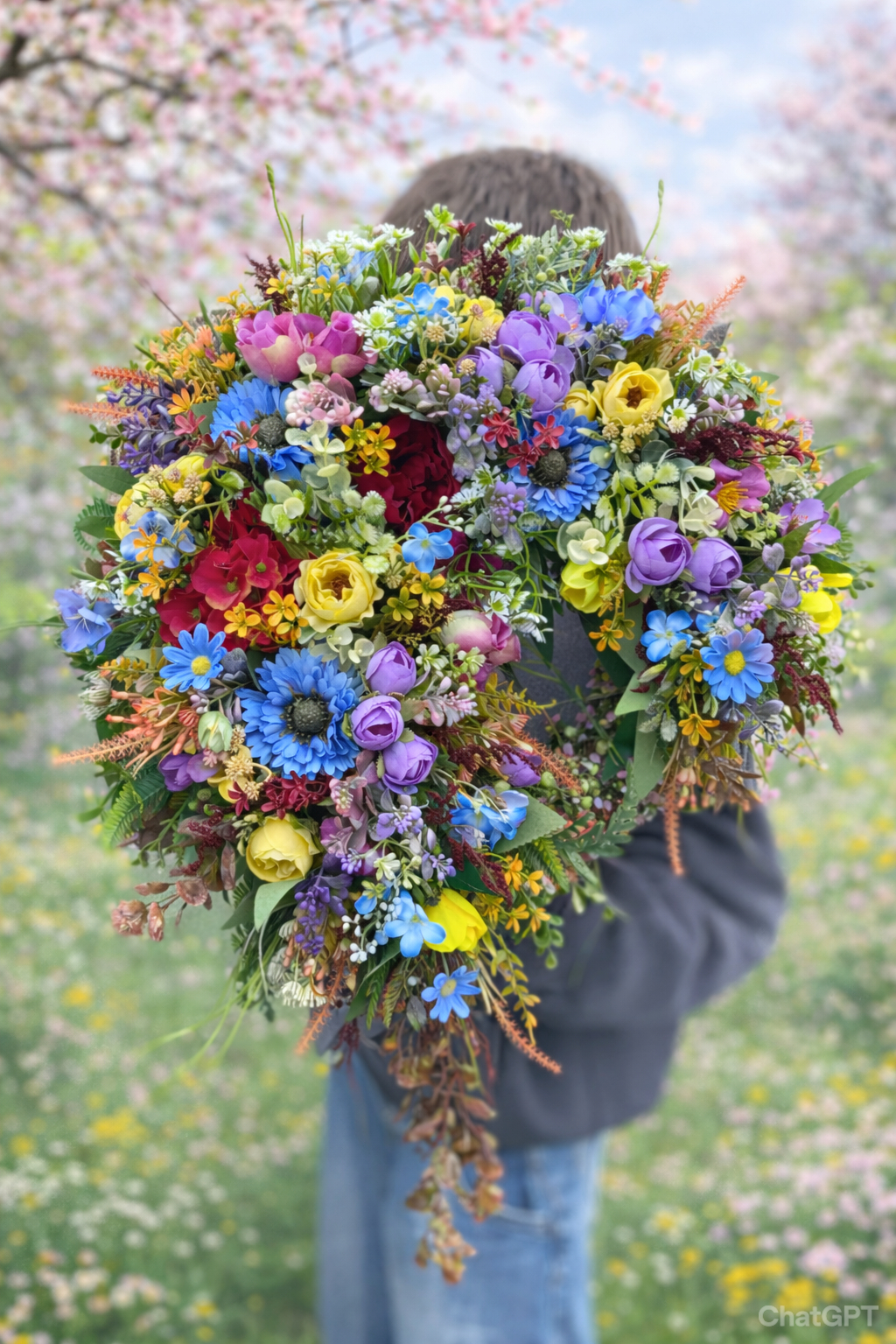 Celoročný veniec s priemerom 40cm, previs 50cm.Použitý umelý materiál, prútie.