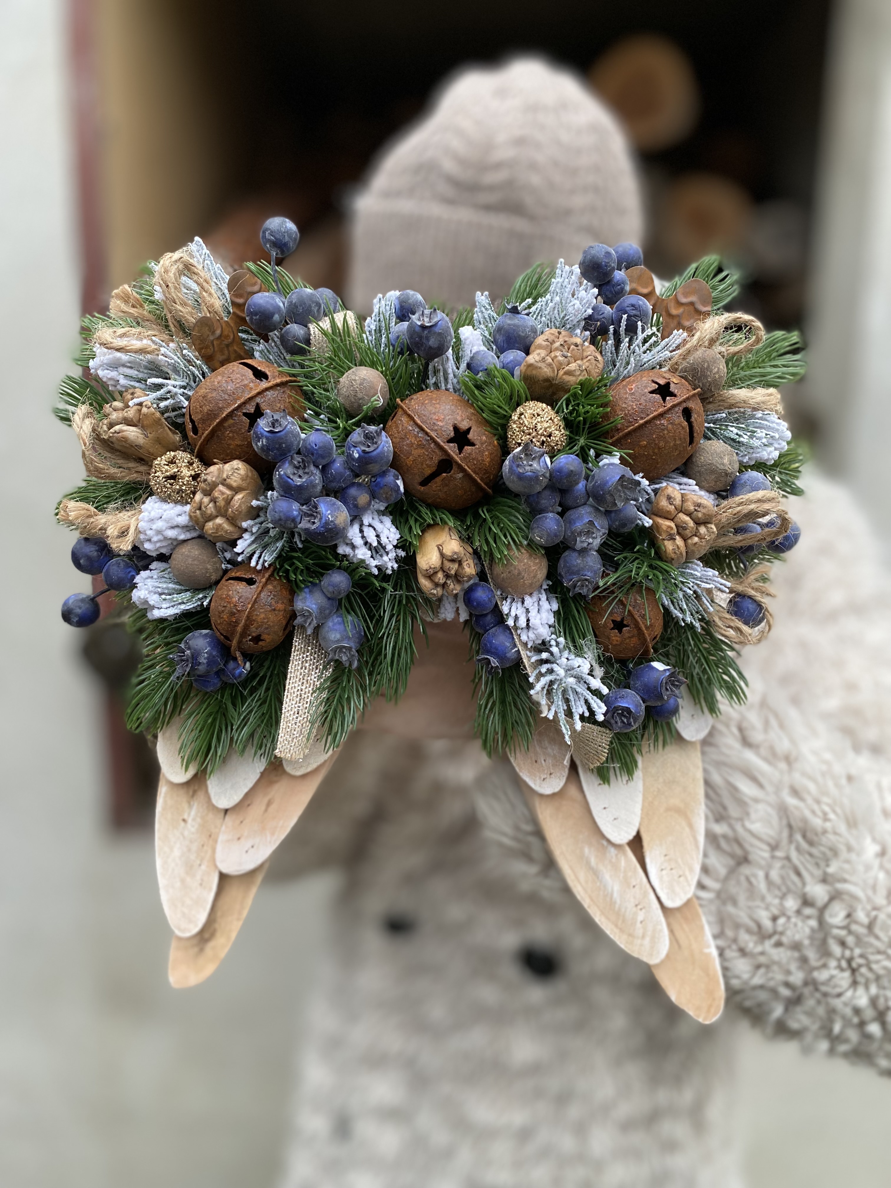 Vneste do svojho domova kúzlo starých čias s týmito nádhernými vintage vianočnými krídlami. Ich jemný, starožitný vzhľad a hrdzavé rolničky dodávajú dekorácii vidiecky šarm a teplo ručnej práce.