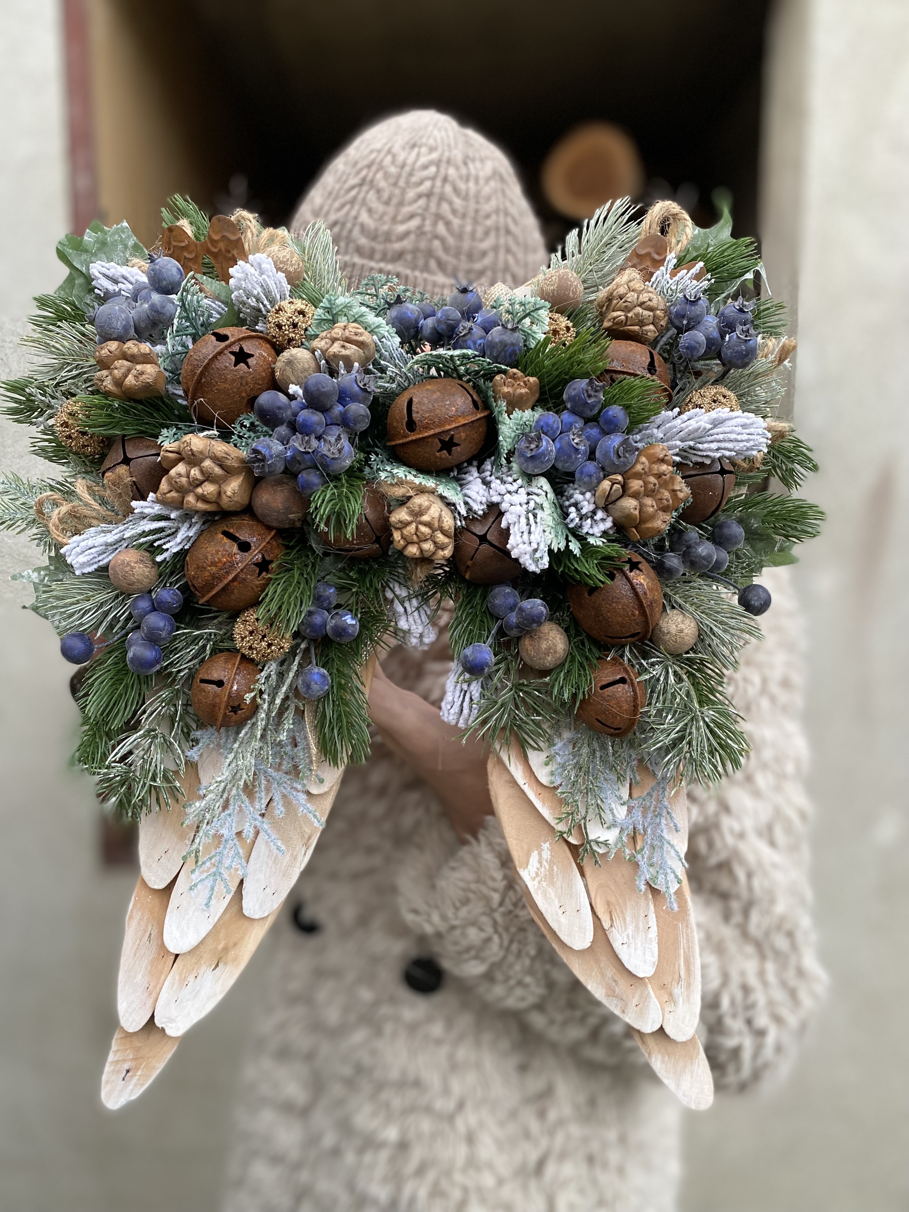 Vneste do svojho domova kúzlo starých čias s týmito nádhernými vintage vianočnými krídlami. Ich jemný, starožitný vzhľad a hrdzavé rolničky dodávajú dekorácii vidiecky šarm a teplo ručnej práce.