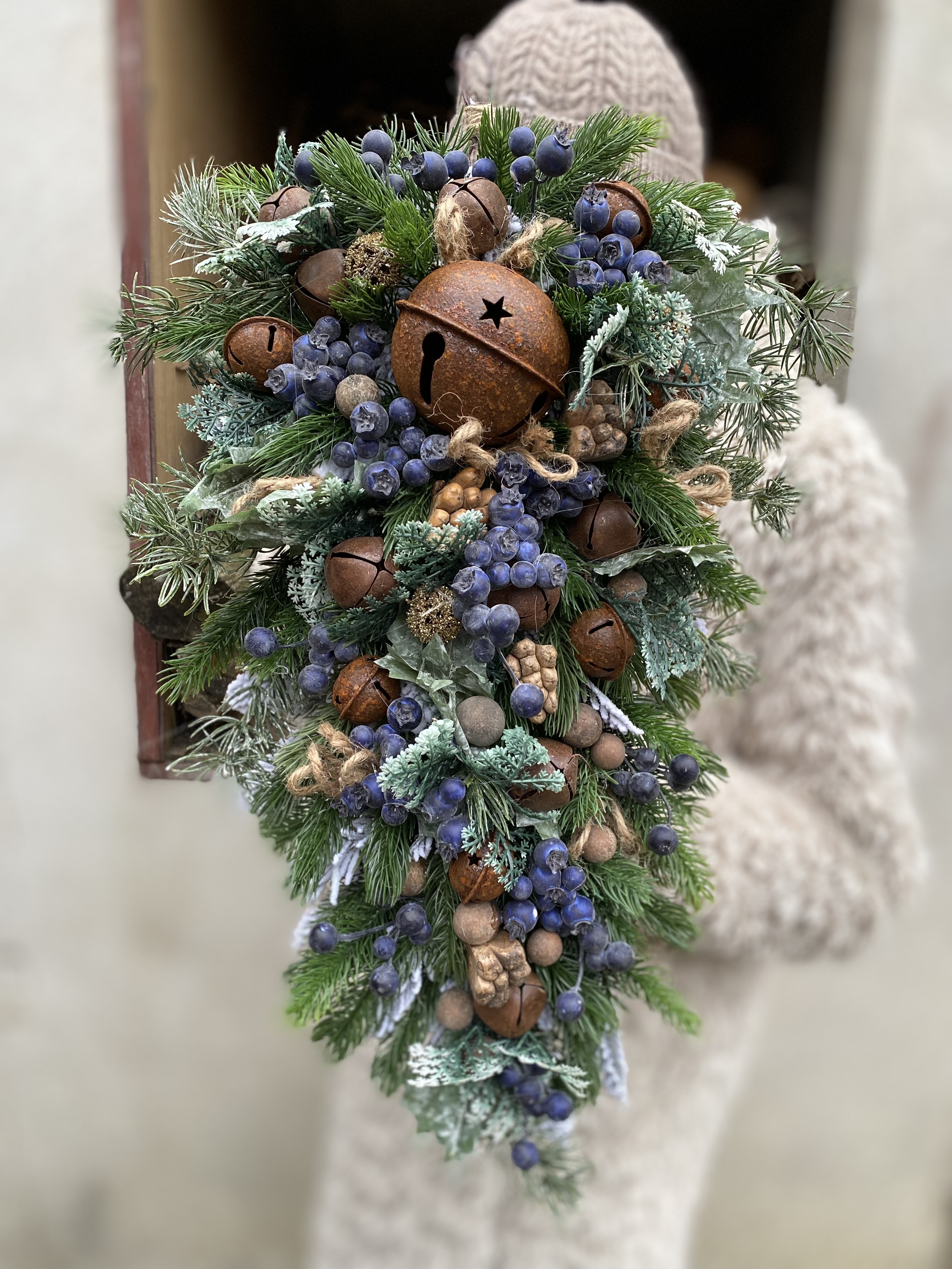 Zimný strapec s rolničkami a bobuľakmi. Kombinácia prírodneho vzhľadu bobuliek, kovových rolničiek prináša šarm rustikálnych Vianoc a pôsobí hrejivo aj v najchladnejších dňoch.