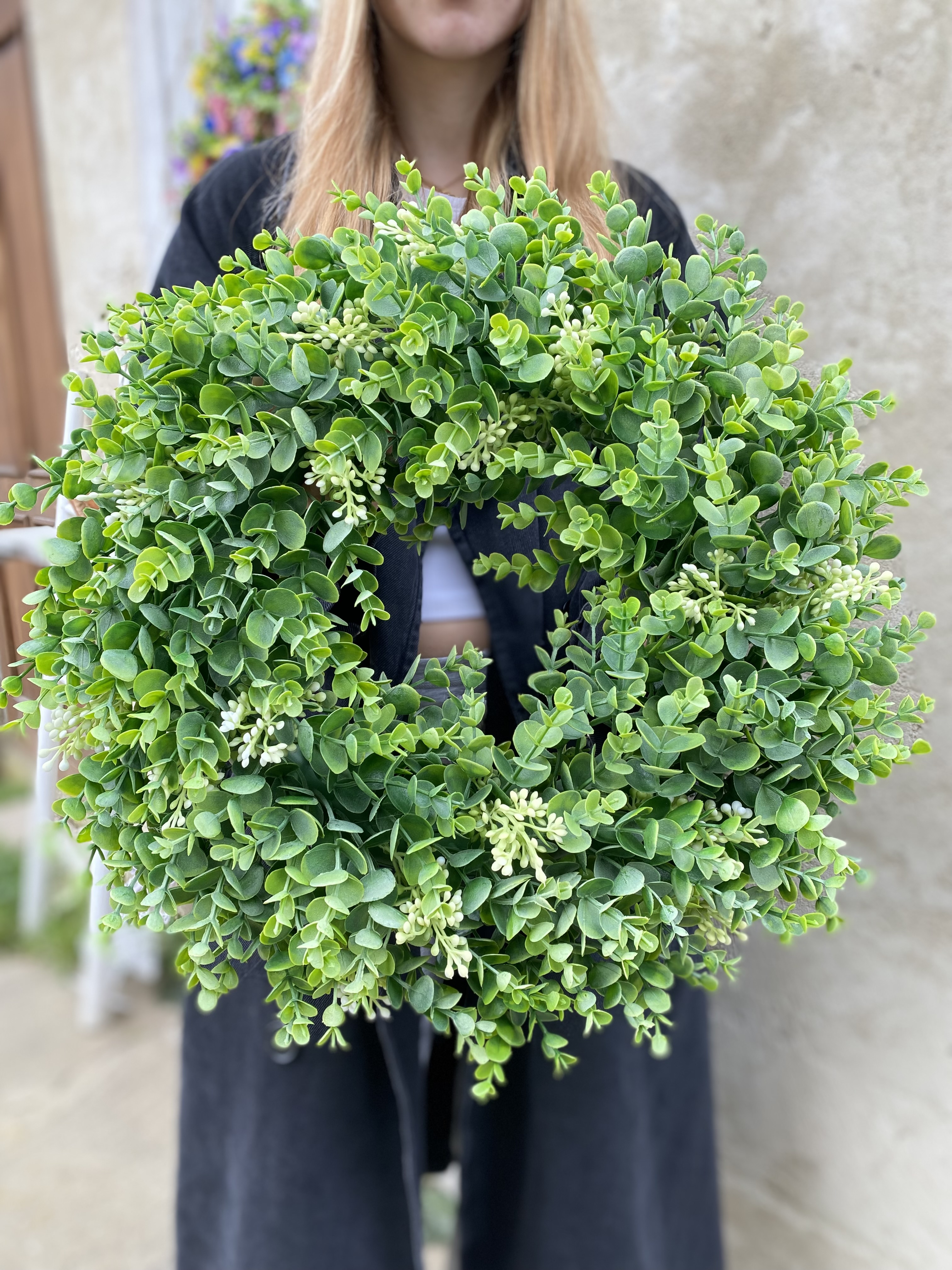 popis:veniec eukalyptus s plastovým bielym doplnkom