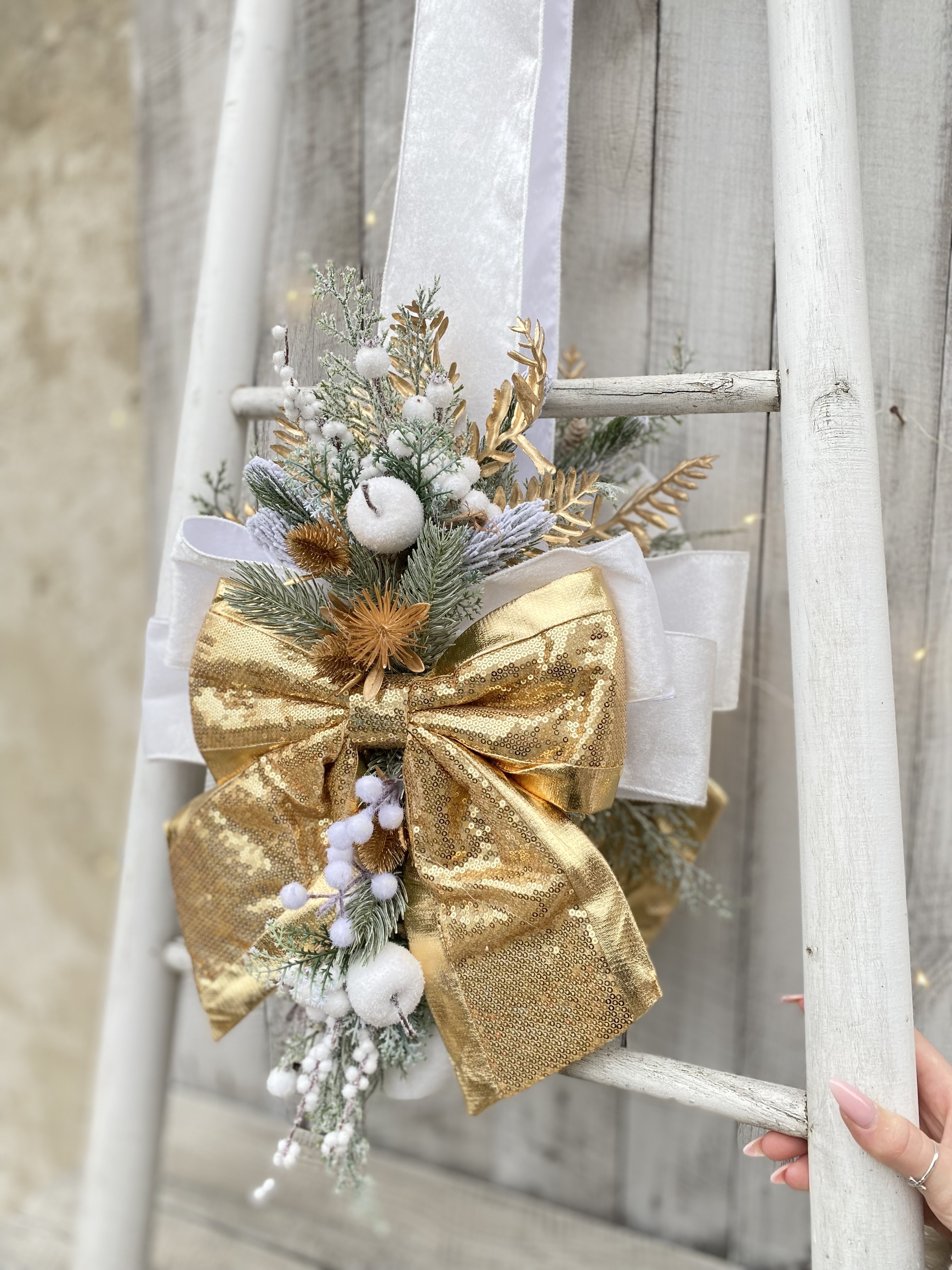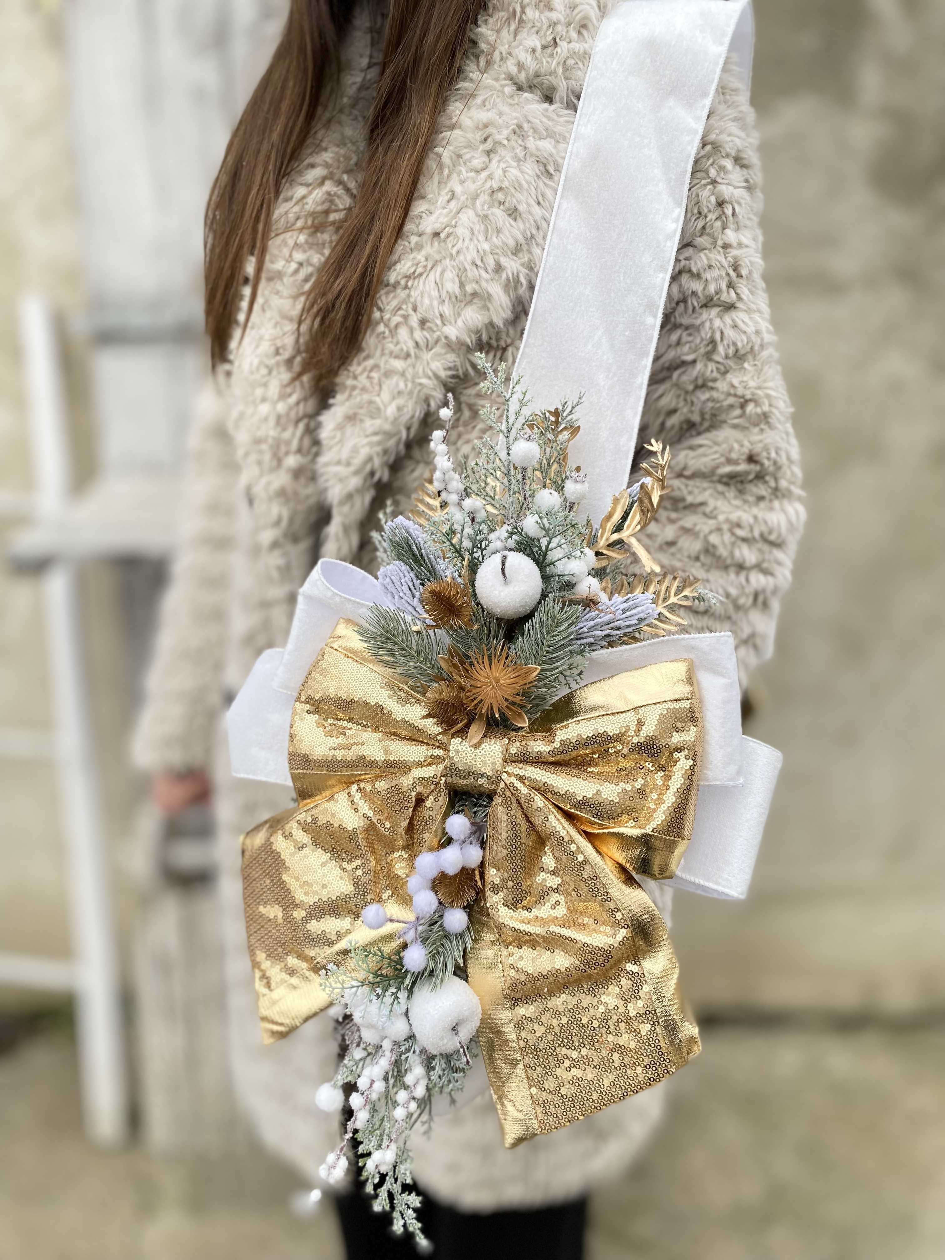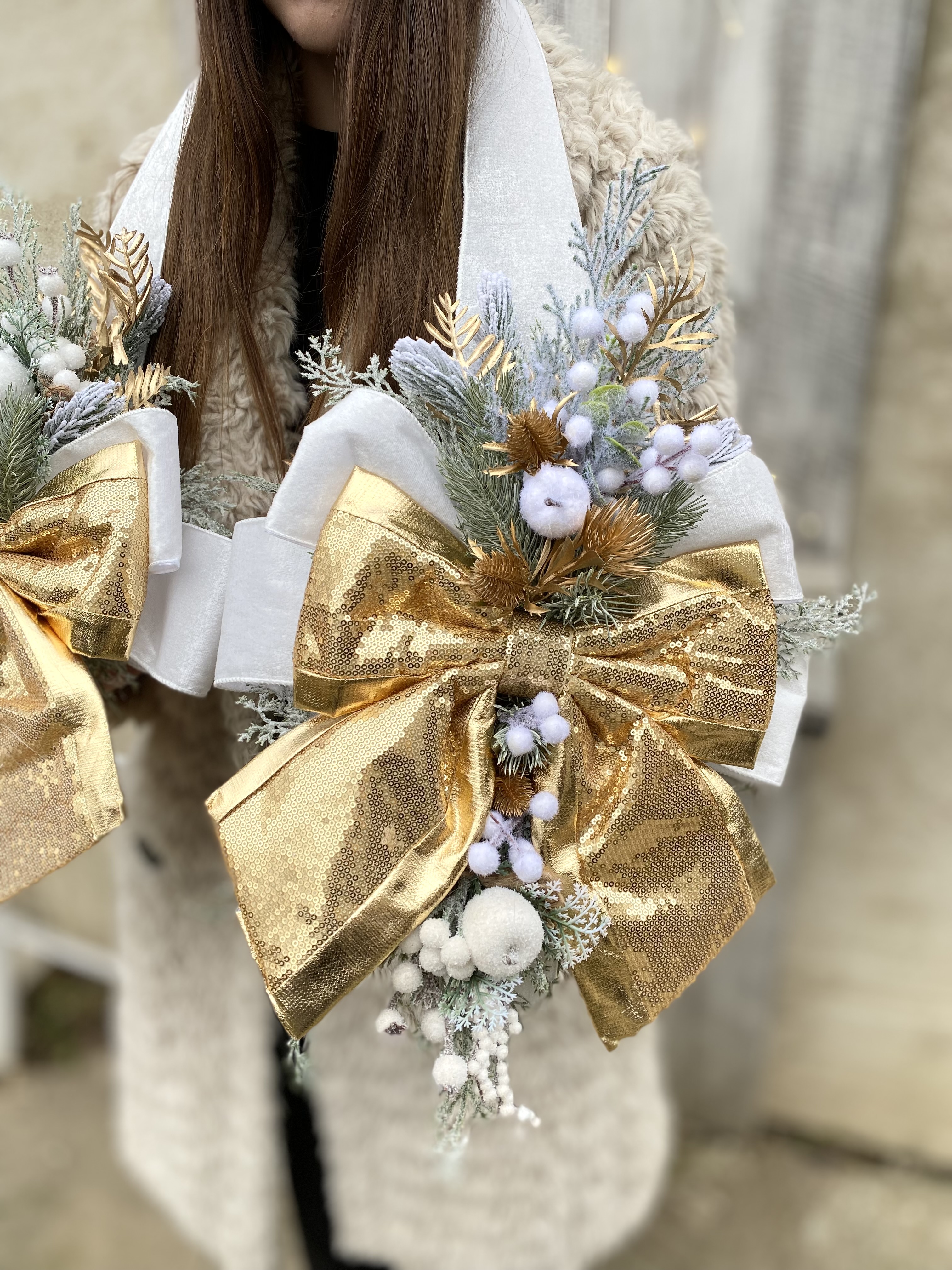 Dodajte svojim vchodovým dverám sviatočný lesk. Elegantná vianočná štóla v zlato bielej farbe vytvorí hrejivú, luxusnú atmosfeŕu a okamžite navodí pravú vianočnú náladu.