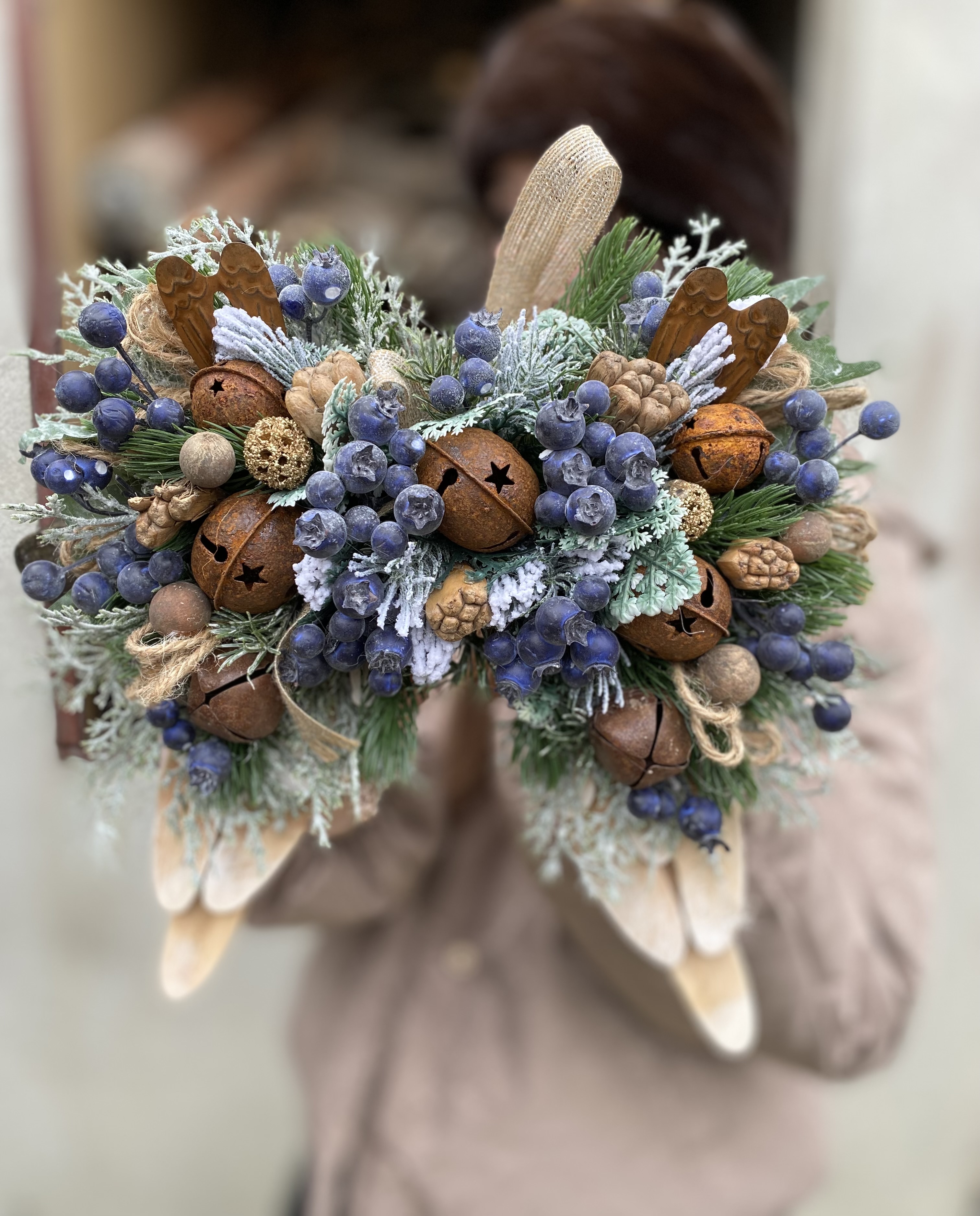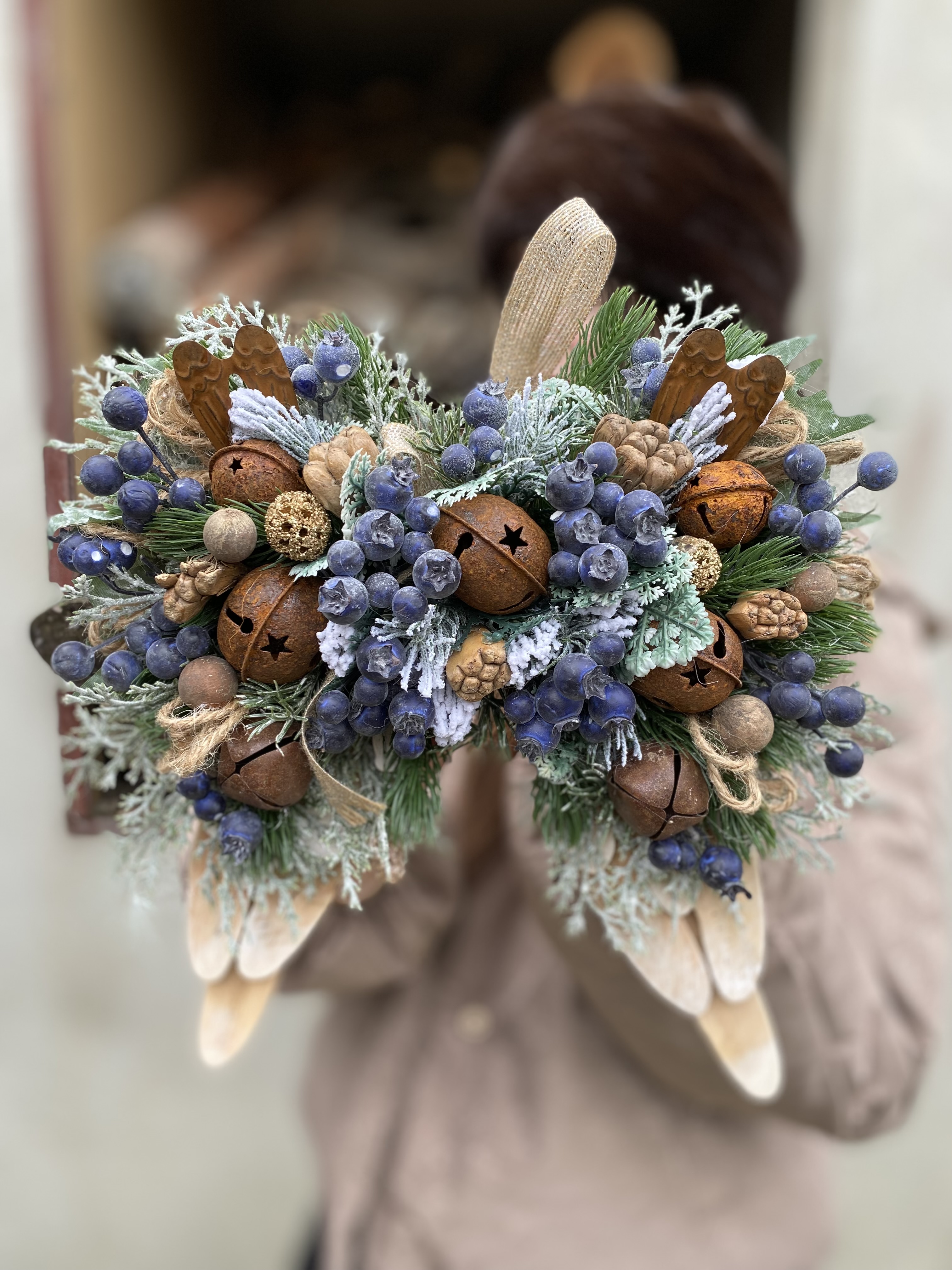 Vneste do svojho domova kúzlo starých čias s týmito nádhernými vintage vianočnými krídlami. Ich jemný, starožitný vzhľad a hrdzavé rolničky dodávajú dekorácii vidiecky šarm a teplo ručnej práce.