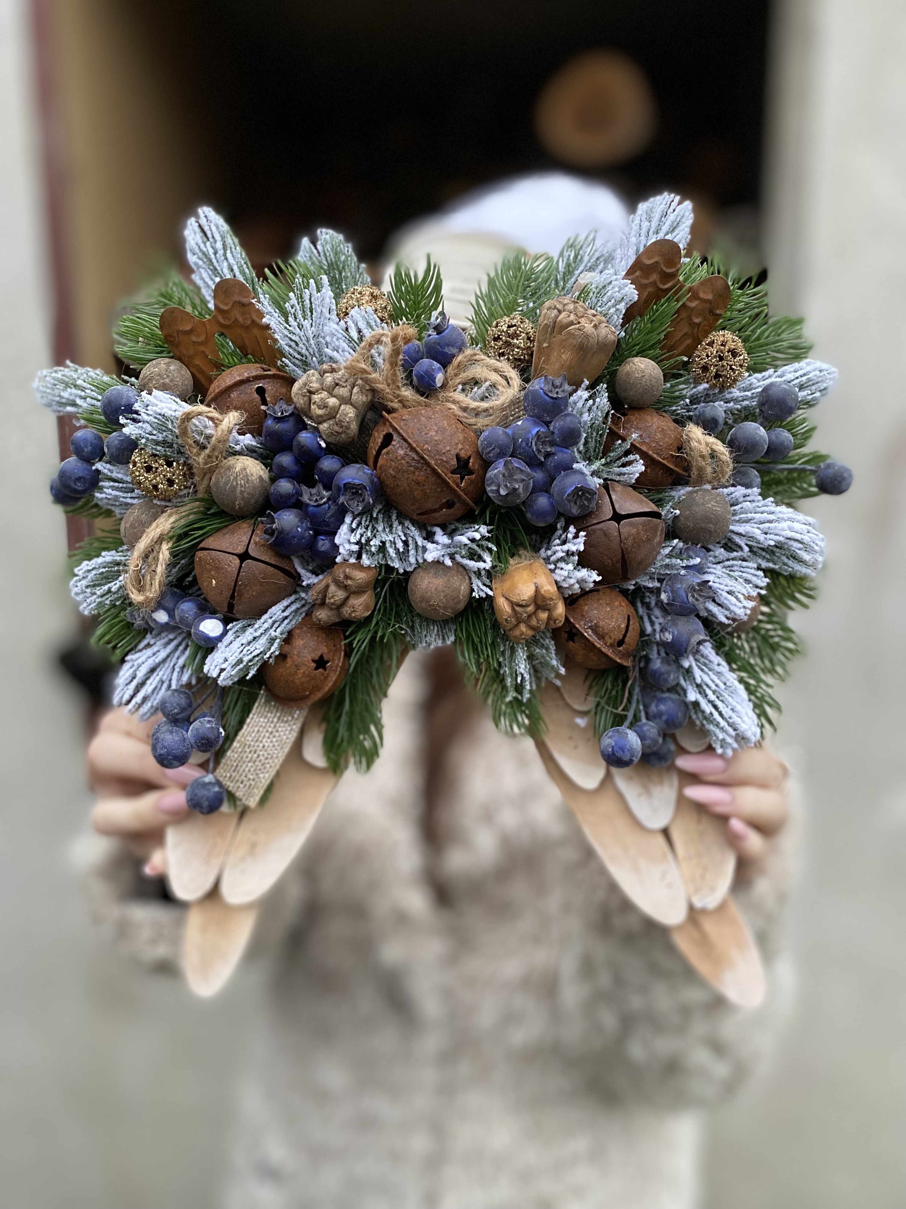 Vneste do svojho domova kúzlo starých čias s týmito nádhernými vintage vianočnými krídlami. Ich jemný, starožitný vzhľad a hrdzavé rolničky dodávajú dekorácii vidiecky šarm a teplo ručnej práce.