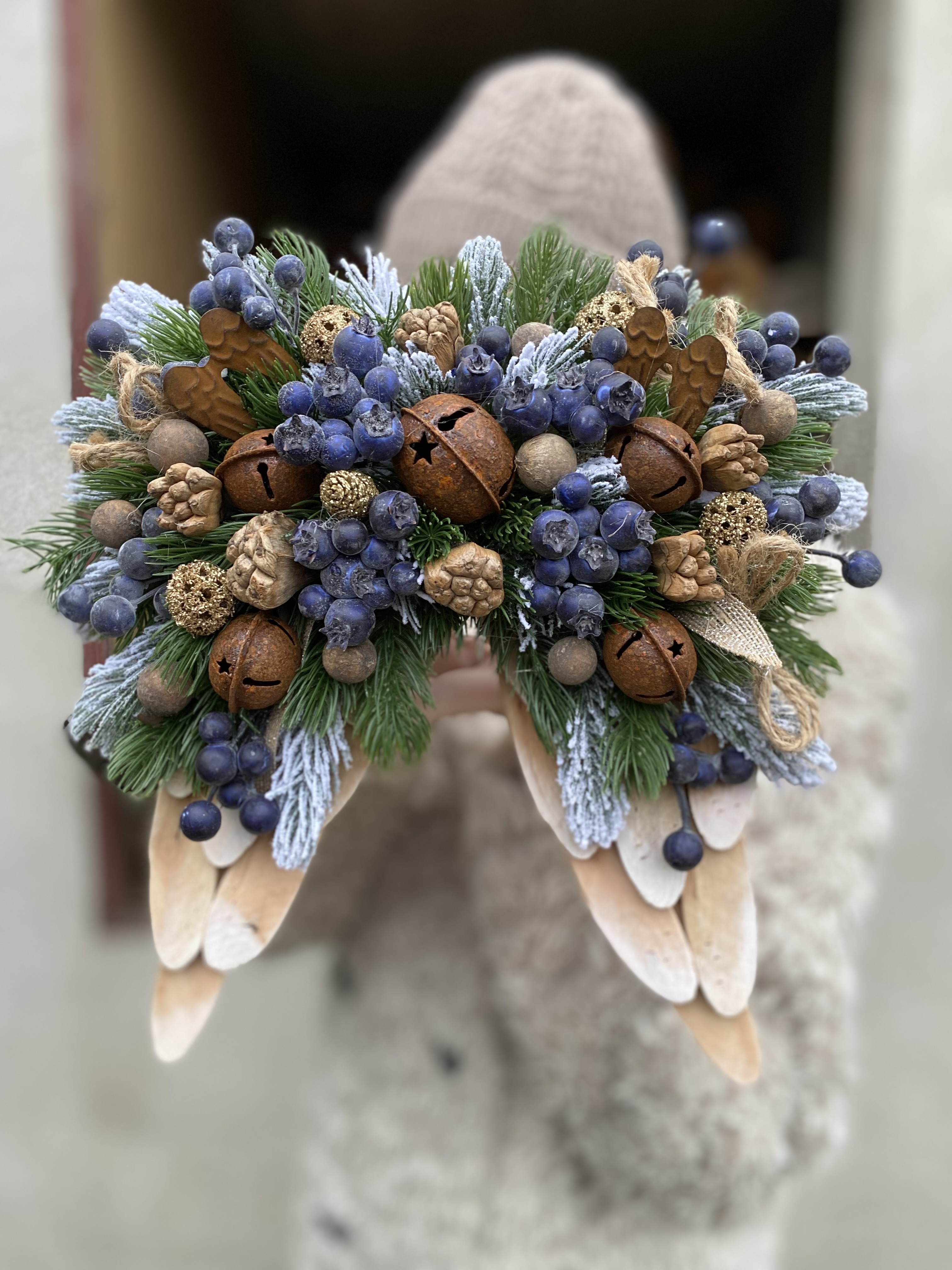 Vneste do svojho domova kúzlo starých čias s týmito nádhernými vintage vianočnými krídlami. Ich jemný, starožitný vzhľad a hrdzavé rolničky dodávajú dekorácii vidiecky šarm a teplo ručnej práce.